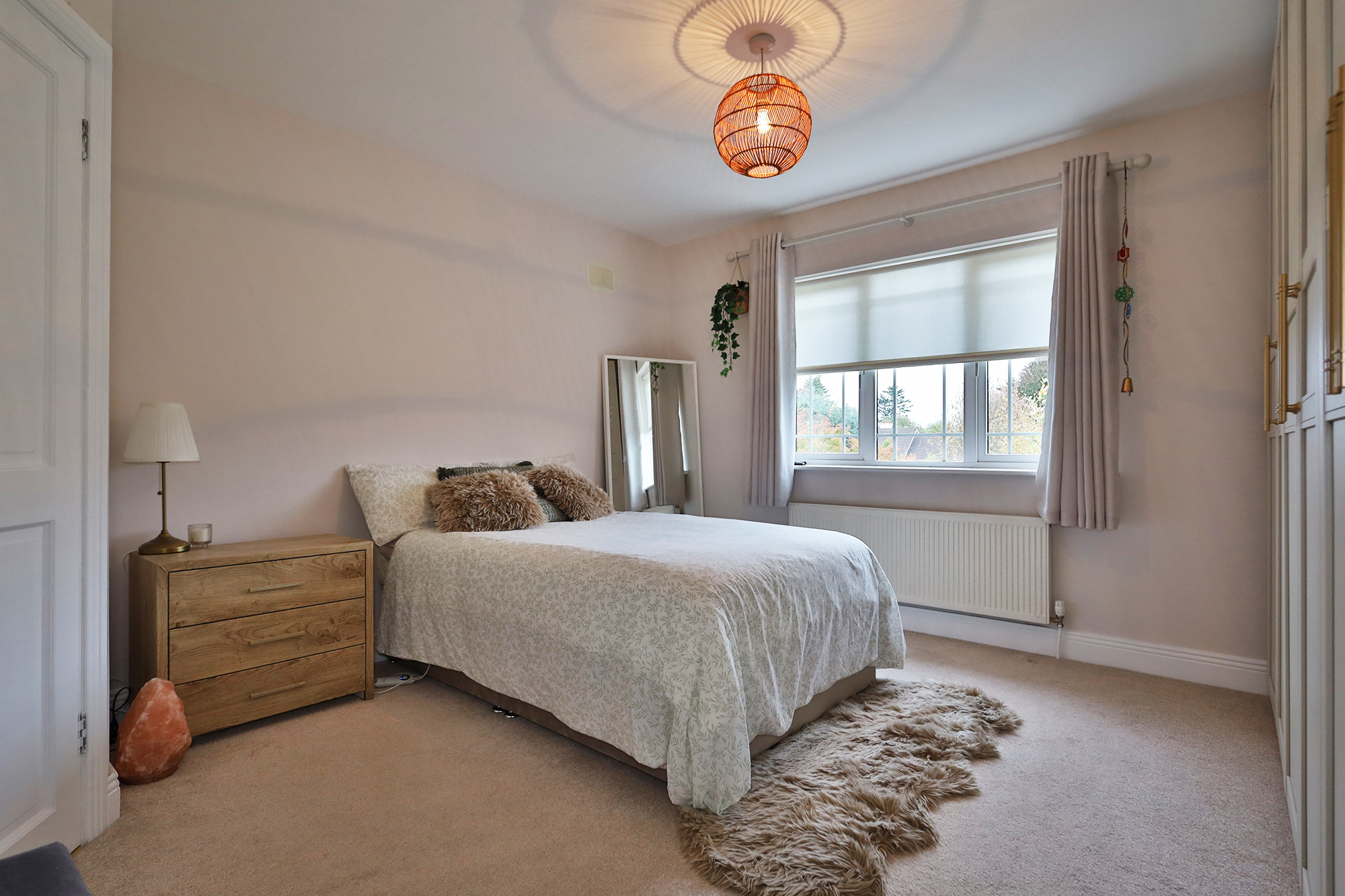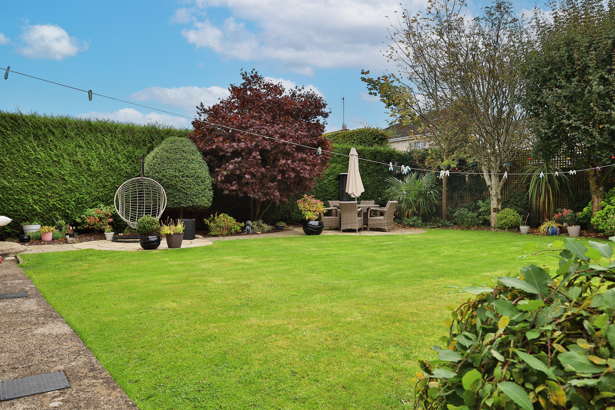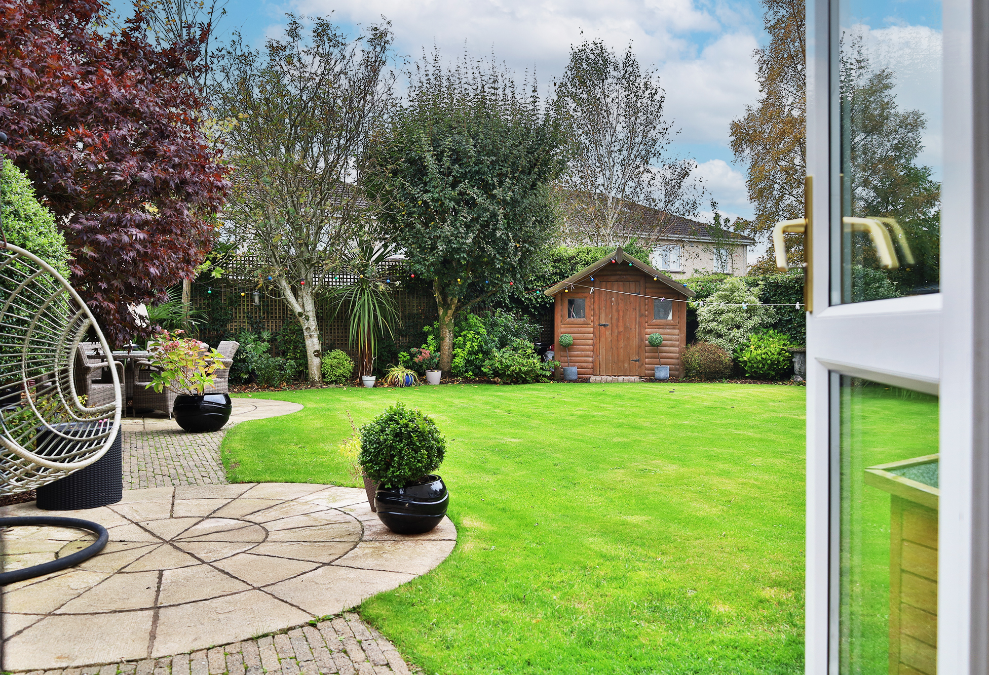 To the rear, the property boasts a meticulously landscaped, south facing garden that serves as a private retreat. A neatly maintained lawn is bordered by mature hedging and colourful planting, ensuring privacy and year-round appeal. A paved patio area provides the perfect spot for outdoor dining and entertaining, while additional seating areas offer versatility and charm. The garden is both spacious and lowmaintenance, ideal for families and those who enjoy spending time outdoors.