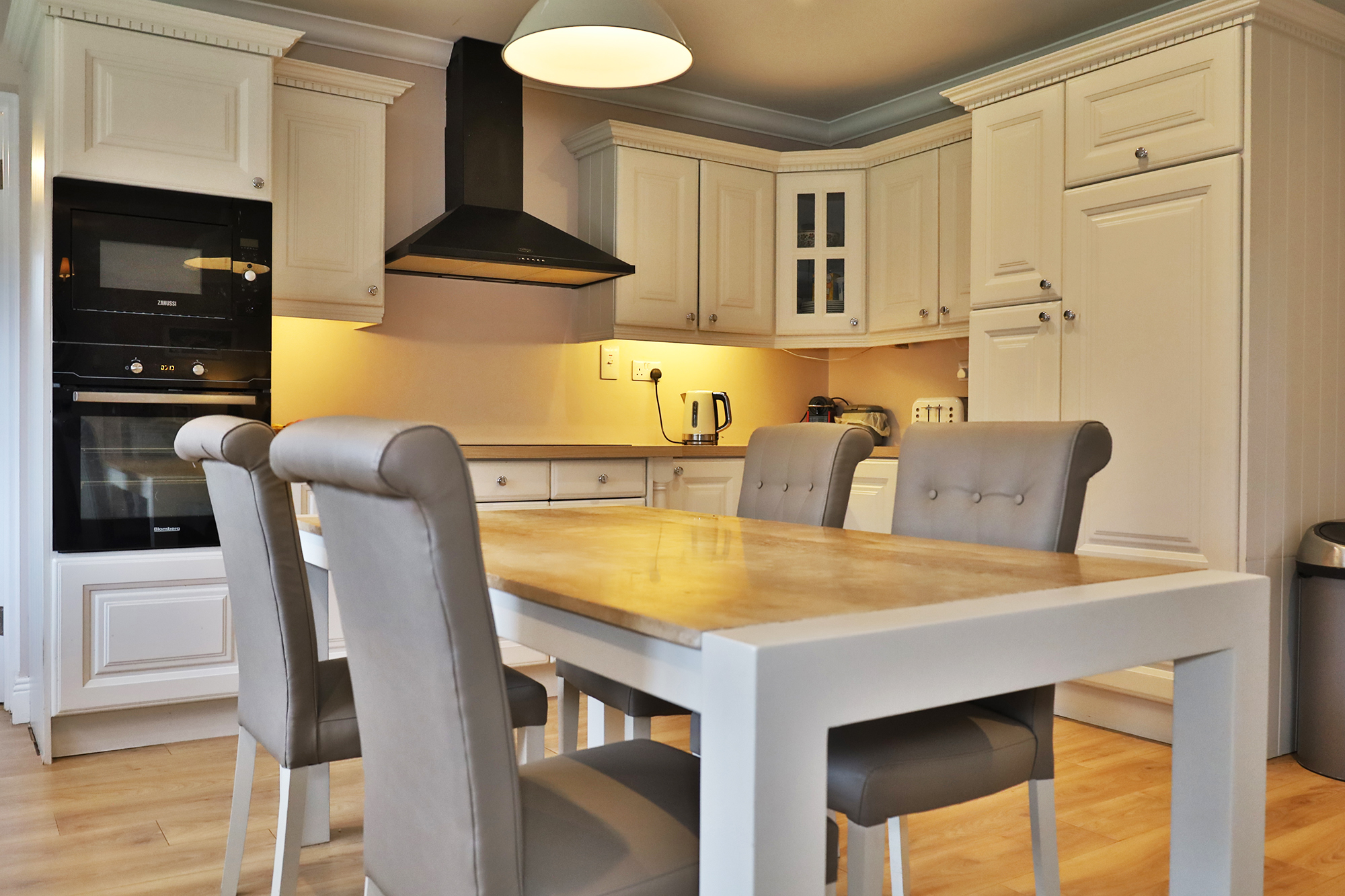 meals, while the adjoining living area includes a solid fuel stove, providing a cosy focal point during the colder months.