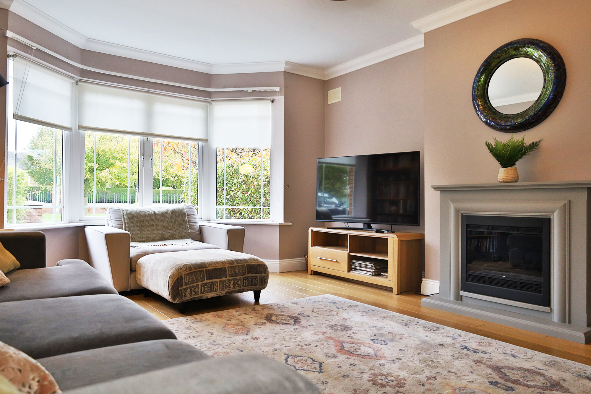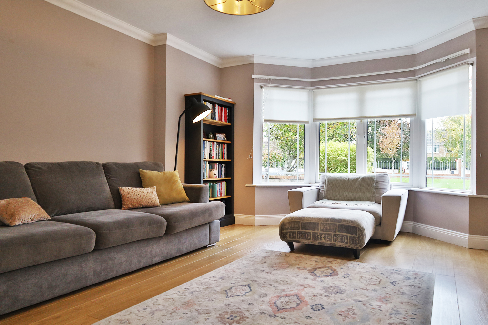 The lounge is another standout feature, a bright, spacious room enhanced by a large bay window that floods the space with natural light, creating an inviting atmosphere for relaxation and entertaining.