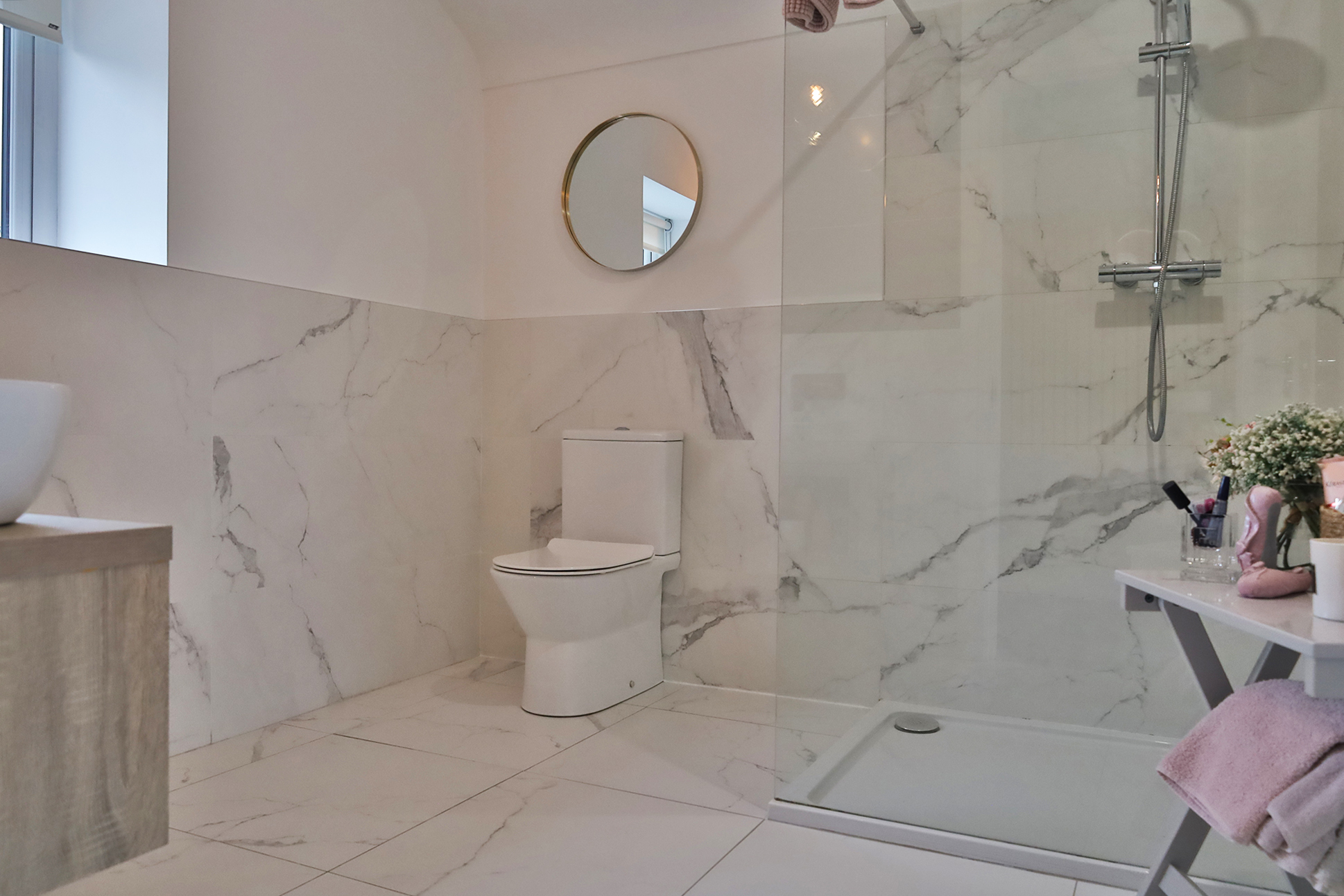 Three spacious ground floor bedrooms, each with the benefit of an ensuite, are complemented by a stylish guest WC and a well-equipped utility room. Upstairs, the master suite offers a private retreat, complete with generous storage, a luxurious ensuite, and a breathtaking balcony with glass surround, the perfect vantage point to soak in panoramic coastal views.