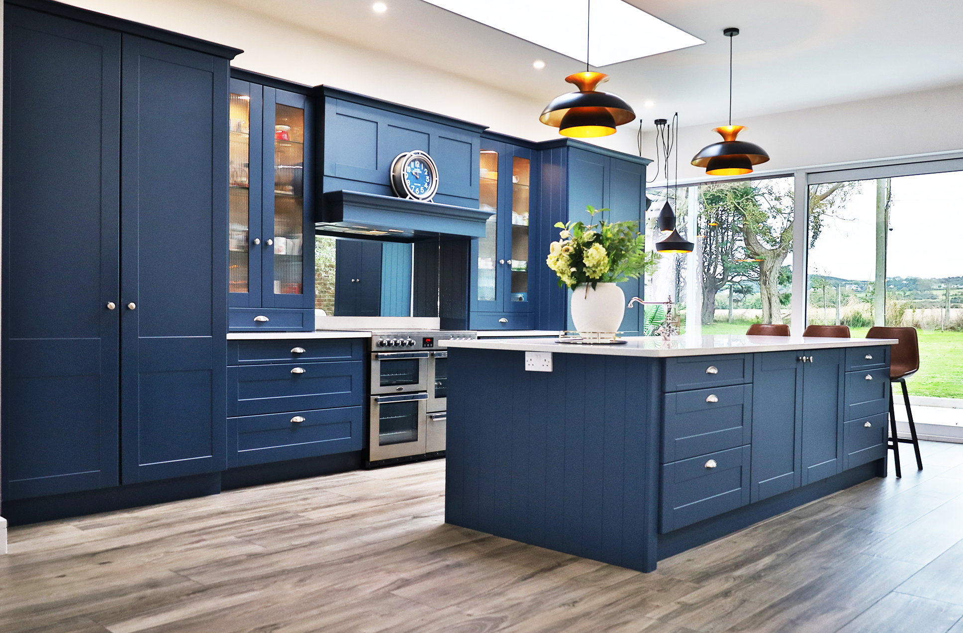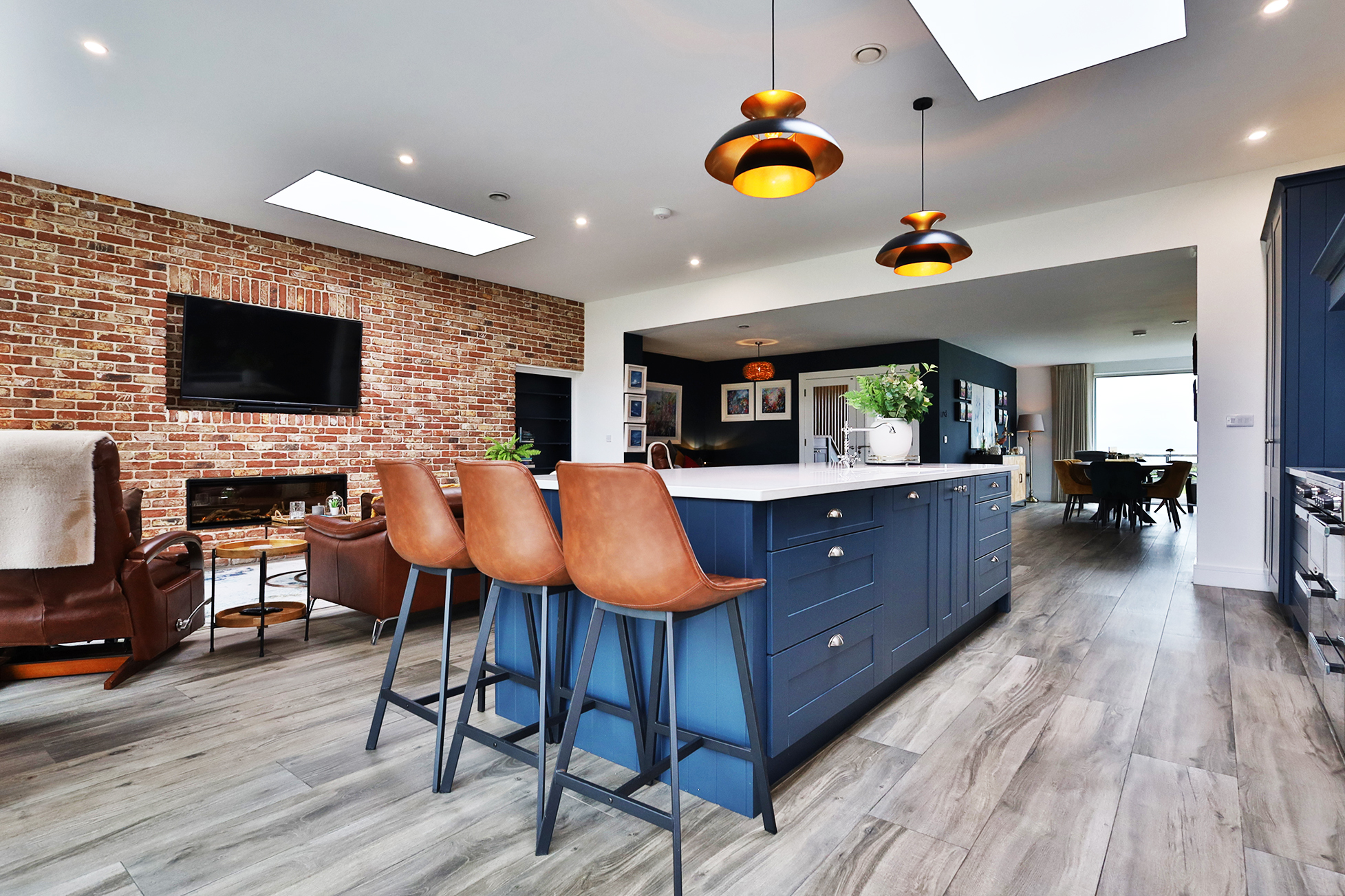Inside, the accommodation is nothing short of exceptional. The heart of the home is a stunning open plan kitchen / dining / living area, flooded with natural light through floor to ceiling glazing and sliding doors, all framing uninterrupted views of the gardens and the sea beyond. This flexible living space includes a cosy snug, reading nook, and dining area, making it ideal for both intimate family moments and large scale entertaining.